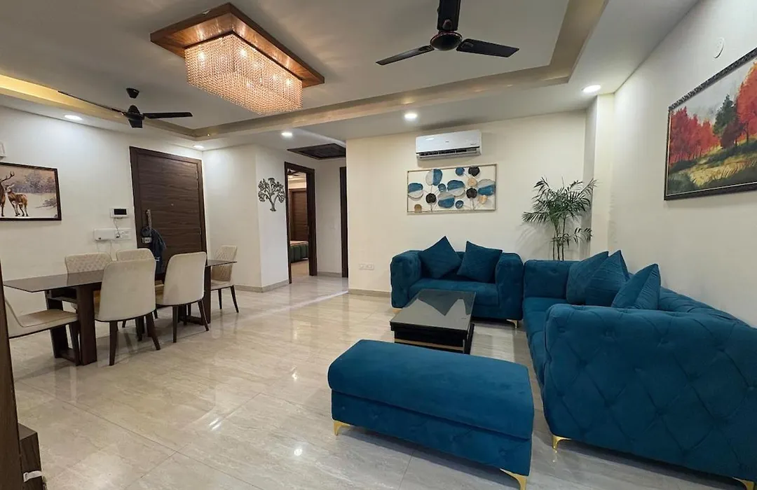Situated approximately a 10-minute drive from the Oyster's Water Park, Luxurious 3Bhk Fully Furnished For Party & Stay Gurgaon apartment also boasts easy access to Huda City Centre train station which is approximately 6 km away. The apartment features Wi-Fi, along with a private parking lot for guests travelling by car.
